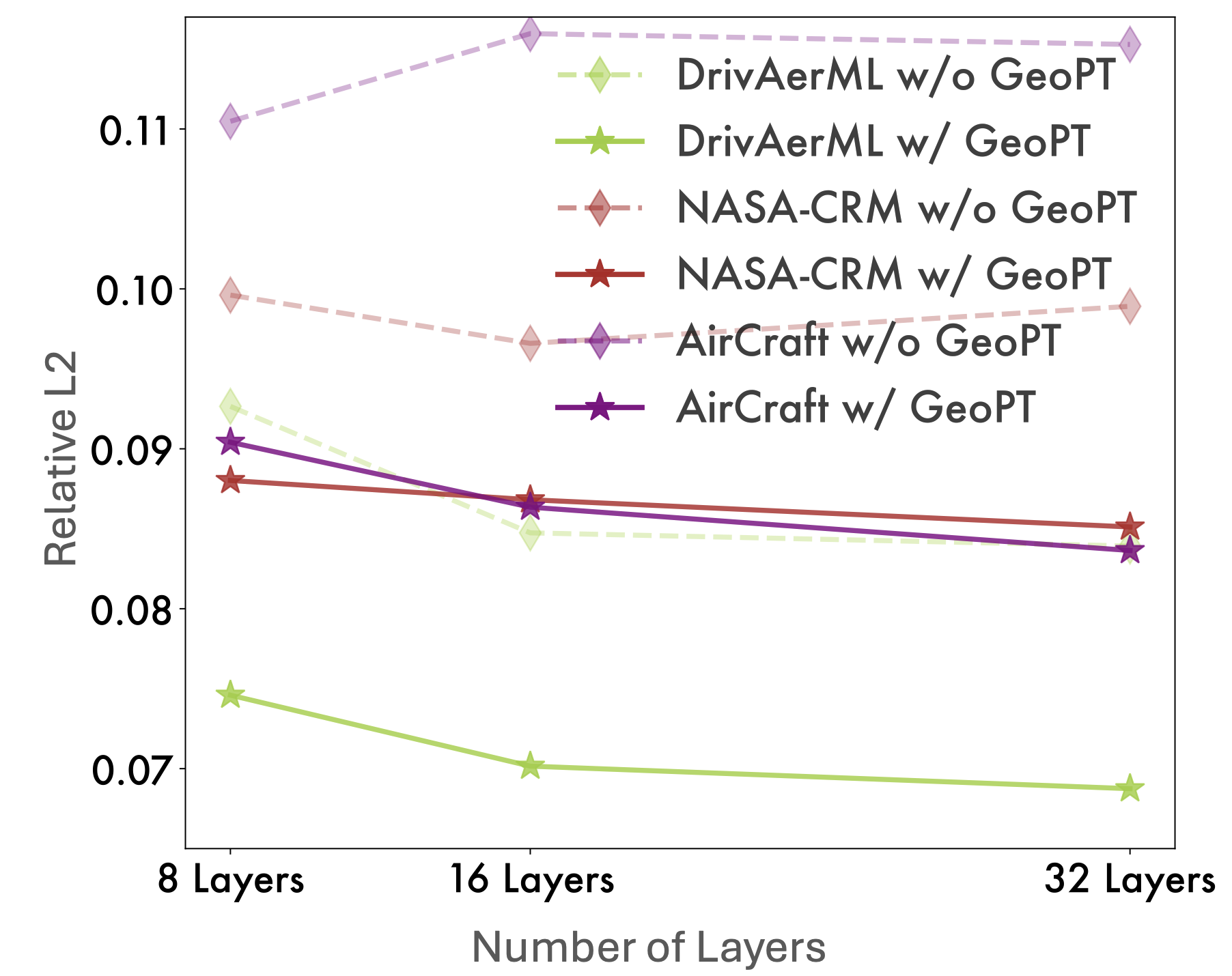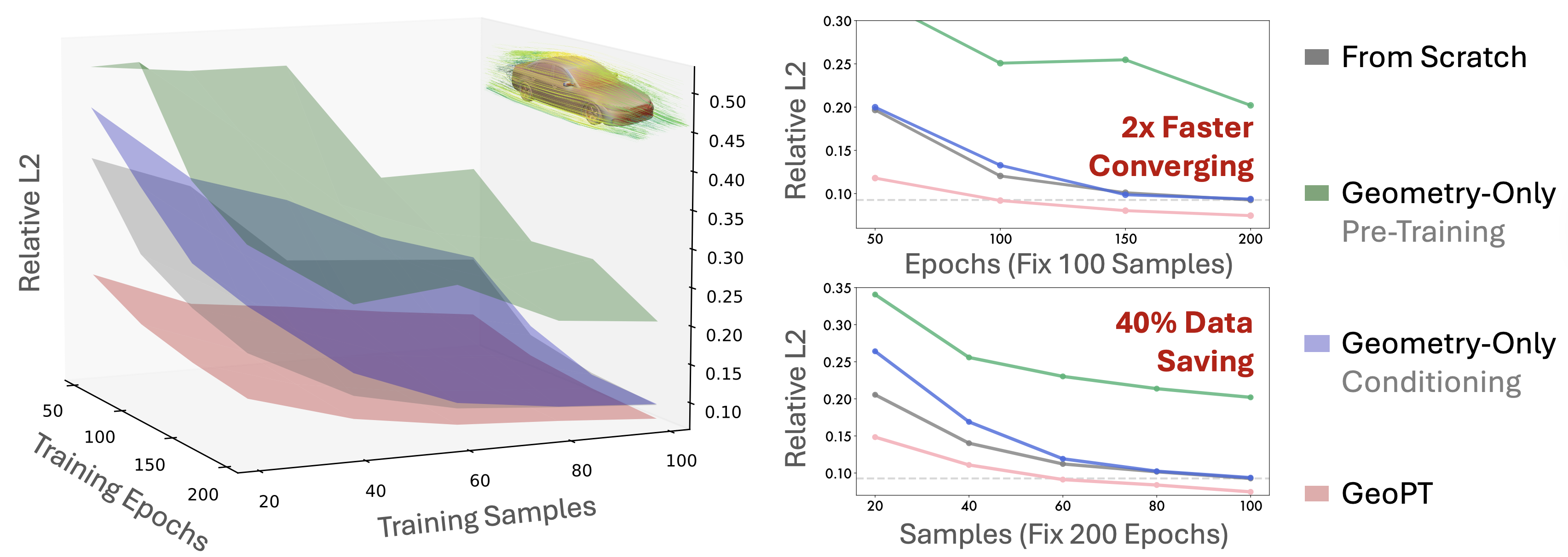 In contrast, GeoPT that is pre-trained with large-scale geometry data can regularize the model hypothesis space to alleviate potential overfitting, thereby consistently benefiting from increasing model size. Such scalability can serve as the basis for building physics foundation model.